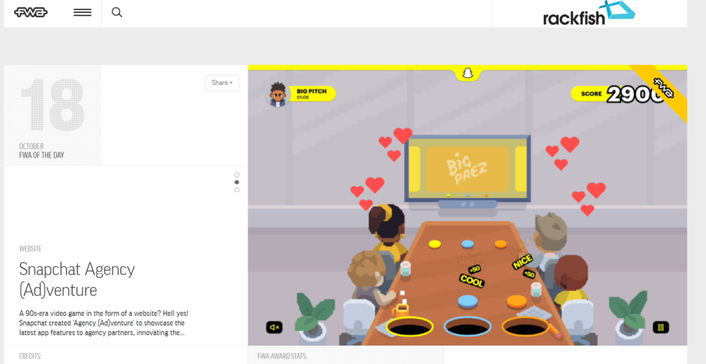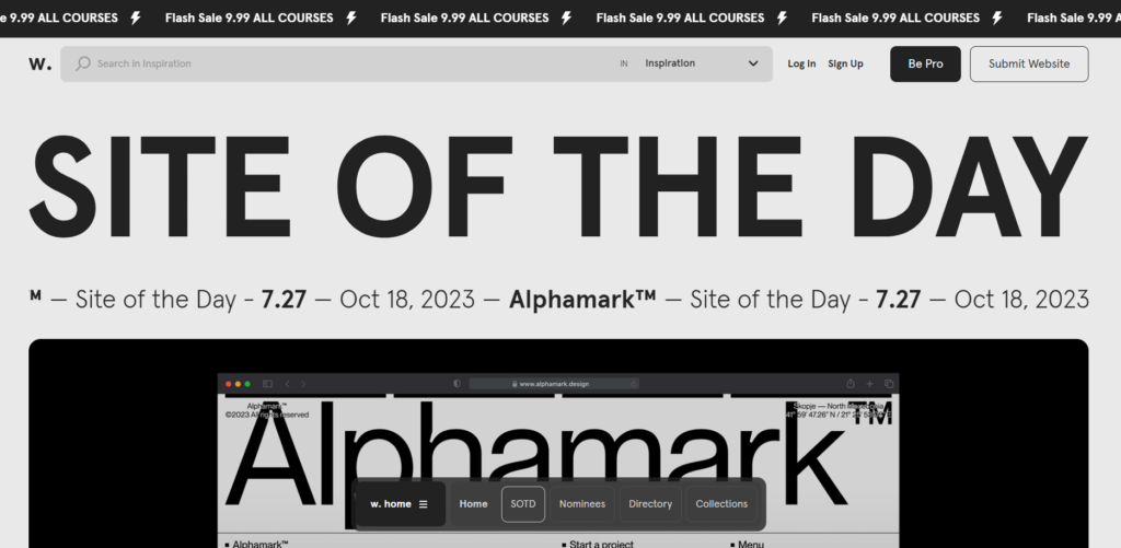FWAは、革新的でクリエイティブなウェブサイトを発掘し、表彰するプラットフォームです。その厳格な審査基準により、賞を受賞したサイトは確かな技術力とオリジナリティを兼ね備えており、訪問者に常に高品質なインスピレーションを提供します。