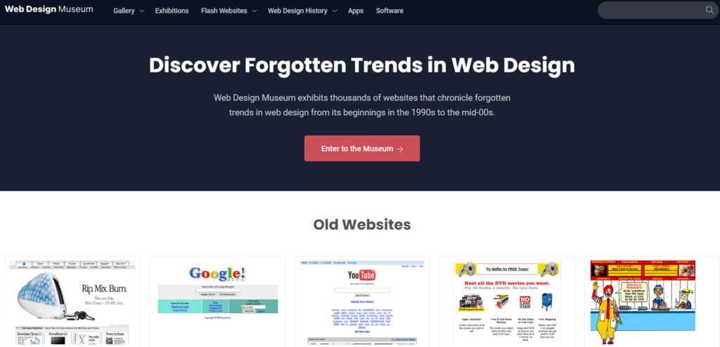 Web Design Museumは、過去の名作ウェブデザインを保存し、展示する特別な場所です。インターネットの黎明期から現在に至るまでのデザインの変遷を見ることができ、レトロなデザインから現代のトレンドまで、デザインの歴史に一石を投じるインスピレーションを提供します。