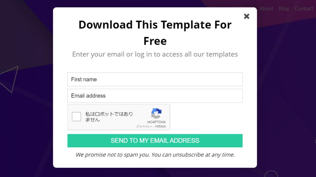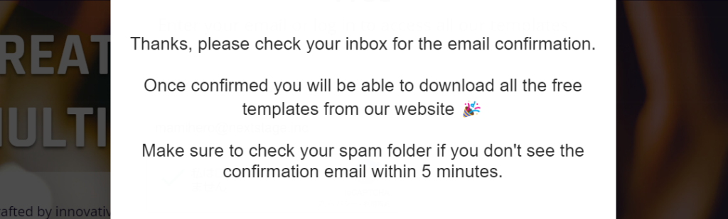 ダウンロ―ドボタンをクリック後に名前とEメールアドレスを入力し、届いたEメールから登録を完了させれば、すべての無料テンプレートがダウンロードできるようになります。
