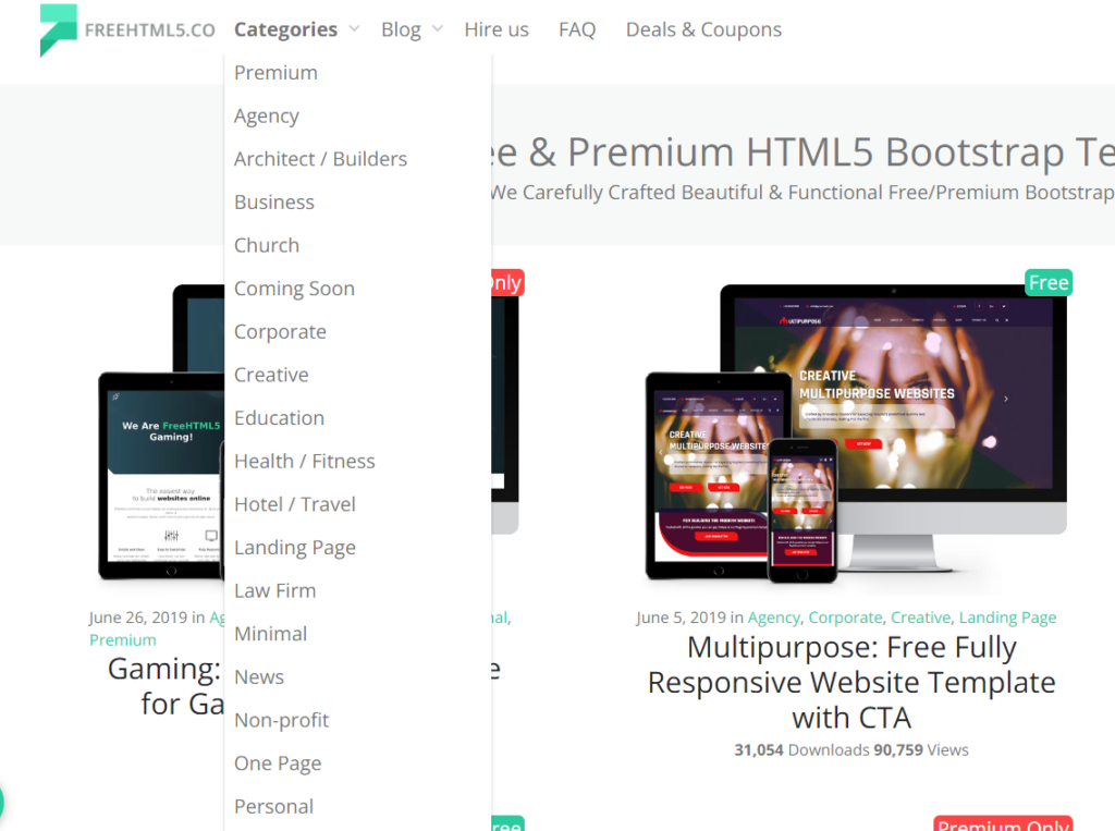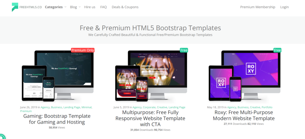 FreeHTML5には、Bootstrapフレームワークを用いた様々なデザインのテンプレートがあり、誰でも簡単に使用できるんだ。