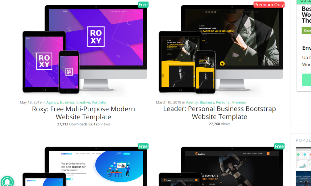 右上に「Free」のマークがついているものが無料のテンプレートです。
