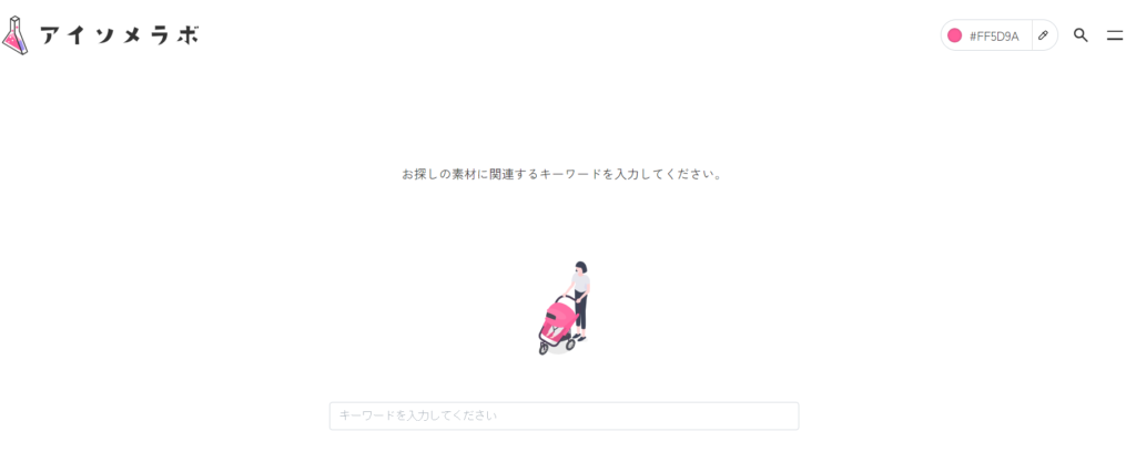 まずはトップページのプレビュー、もしくは画面右上の検索ボタンからキーワード検索してお好みのイラストを見つけよう。