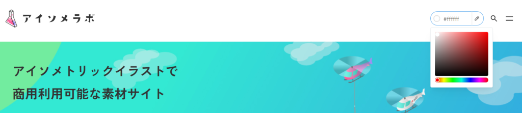 検索ボタンの左の入力欄にカラーコードを入力するか、パレットから色を選ぶことで、素材の色を自由に変更できます。